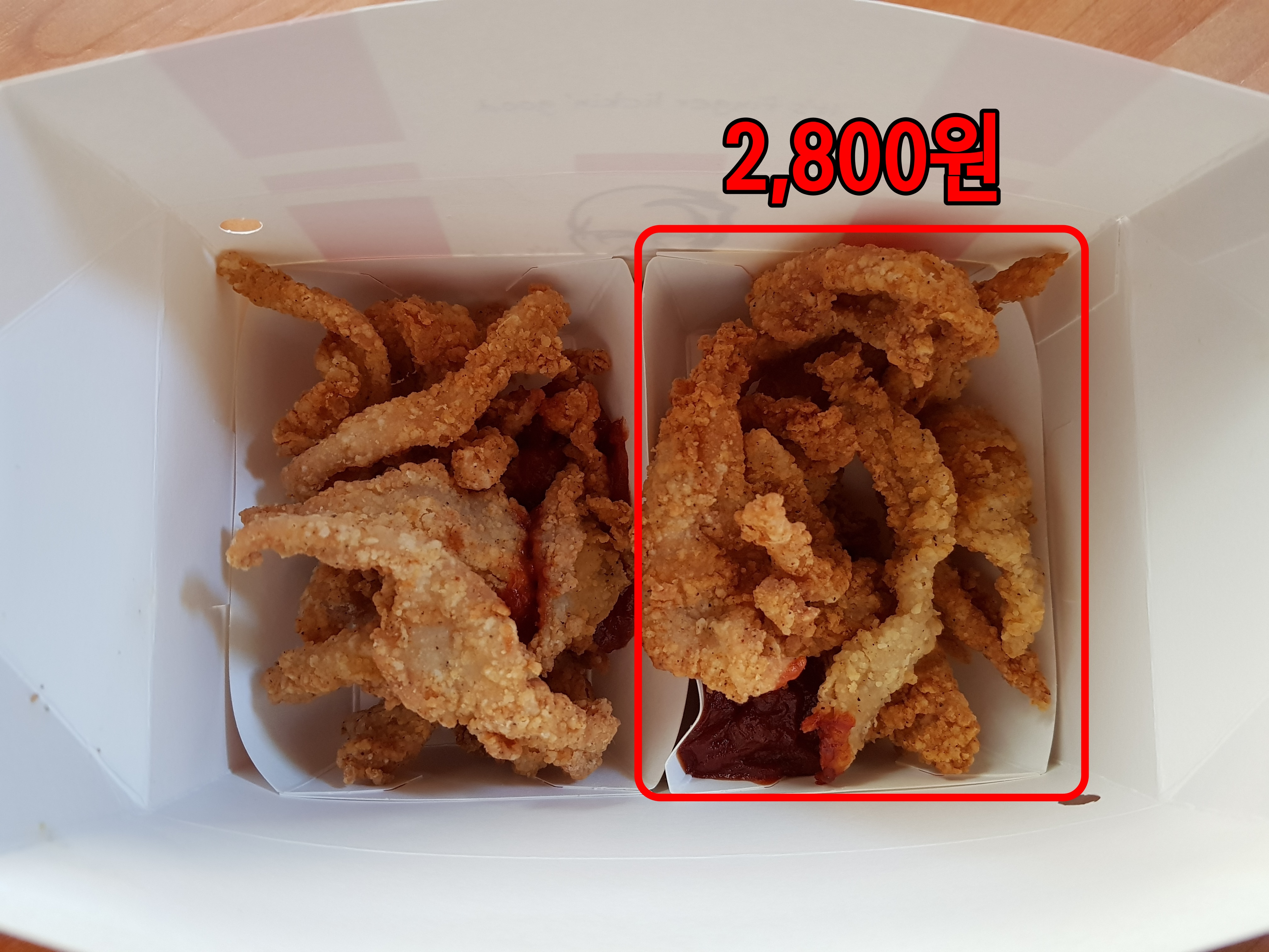 닭껍질 튀김 가격은 2,800원입니다. 저는 2개 구입했어요.