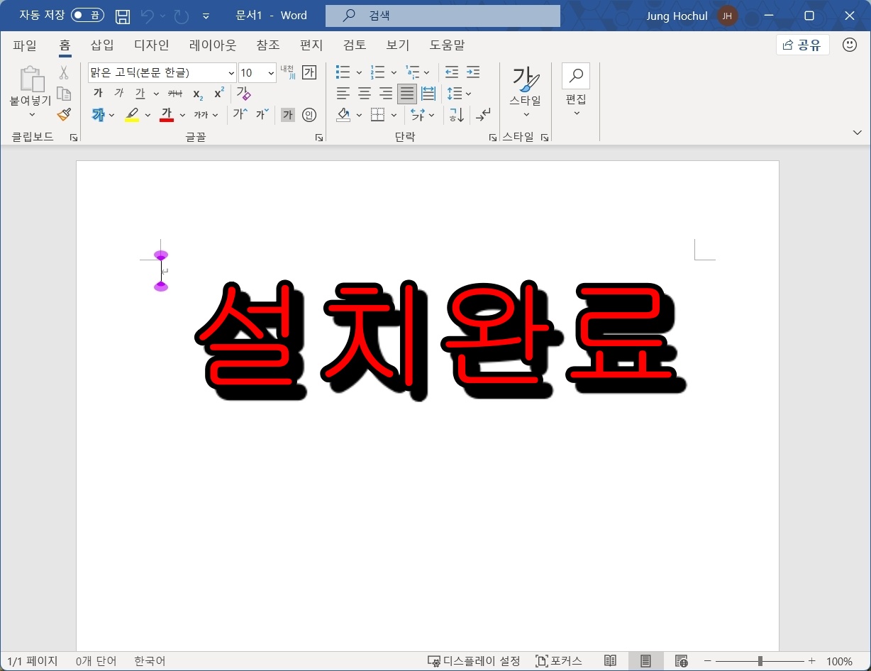 워드 2021이 제대로 실행되는 군요. 오피스 2021 설치가 완료되었습니다.