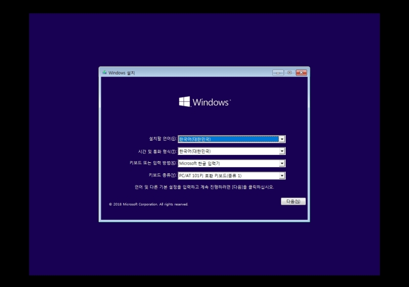 설치 방법은 간단합니다. 보통 윈도우 10 설치하듯이 진행하시면 됩니다.