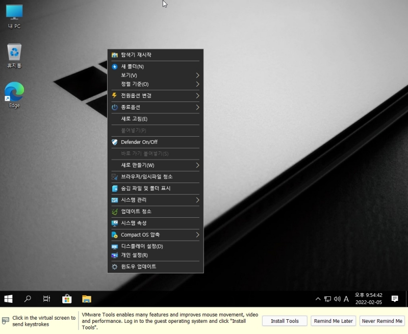 제작하신 분이 기본 기능으로 Compact OS 압축을 넣어 주셨습니다. 이를 이용하면 시스템 파일을 압축해서 용량을 확보할 수 있습니다. C드라이브에 있는 4개 폴더(스샷 참고)를 선택하고 마우스 오른쪽->보내기->Compact Xpress 16K로 압축 을 클릭하시면 됩니다.