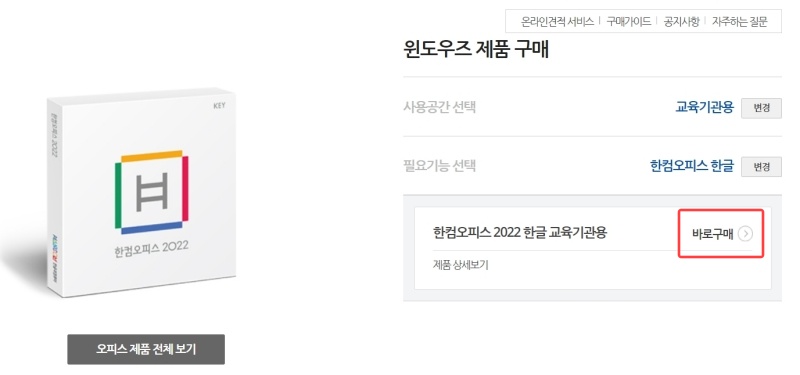한글 2022 교육기관용 구매 방법