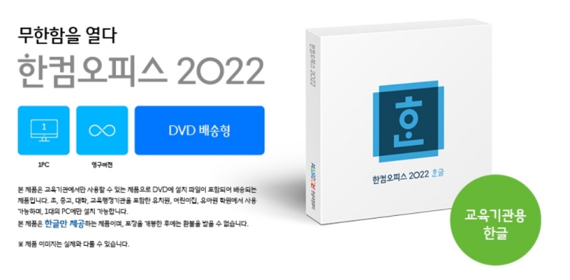 한글 2022 교육기관용 구매 다운 방법