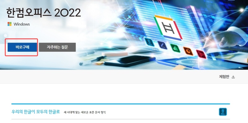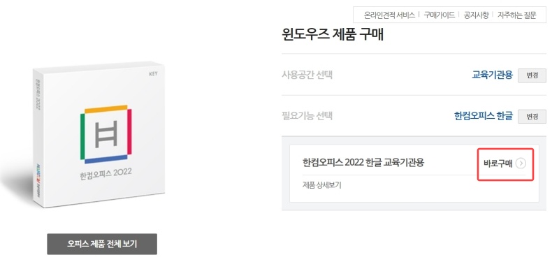 한컴오피스 2022 가정 및 학생용 다운로드 구매 방법