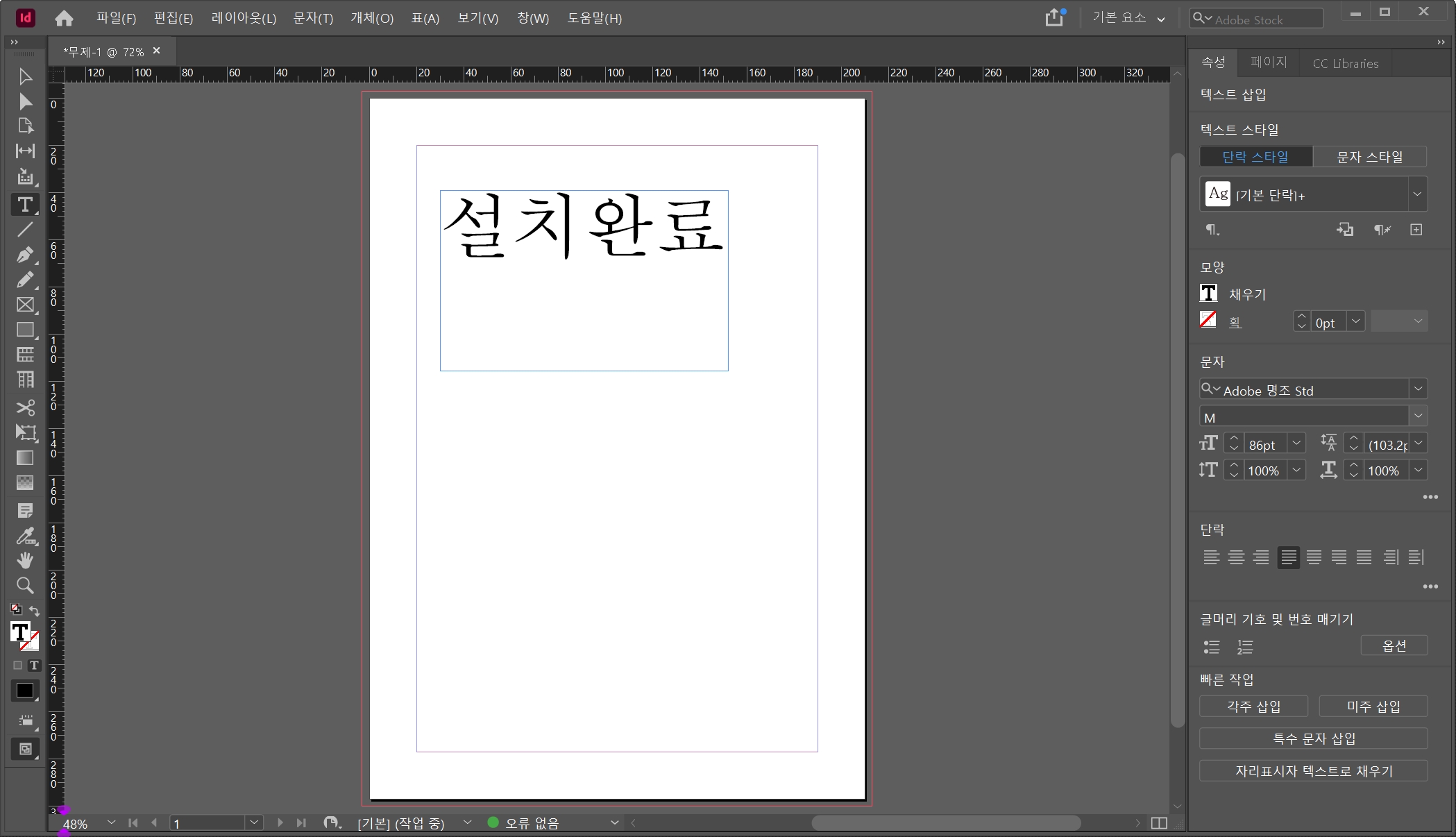설치가 제대로 되었는지 확인힙니다. Indesign 2020을 실행합니다.