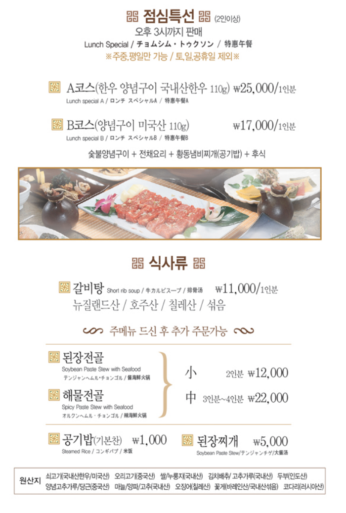 저는 여기서 주로 주말 코스요리(구이정식)을 먹었는데, 고기 맛이 좋았습니다.