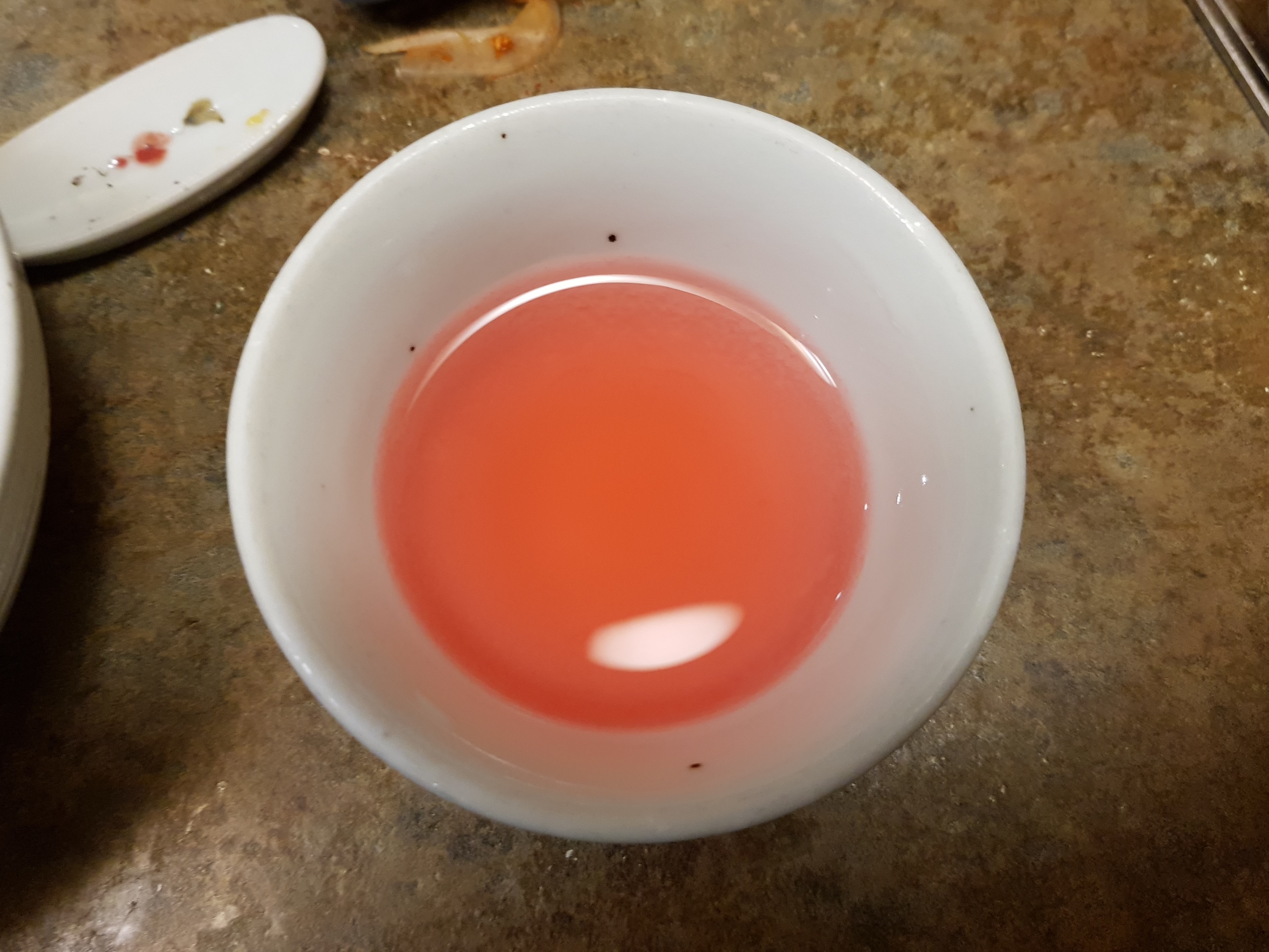 후식 중 하나인 오미자차입니다. 달착지근하니 맛이 좋습니다.