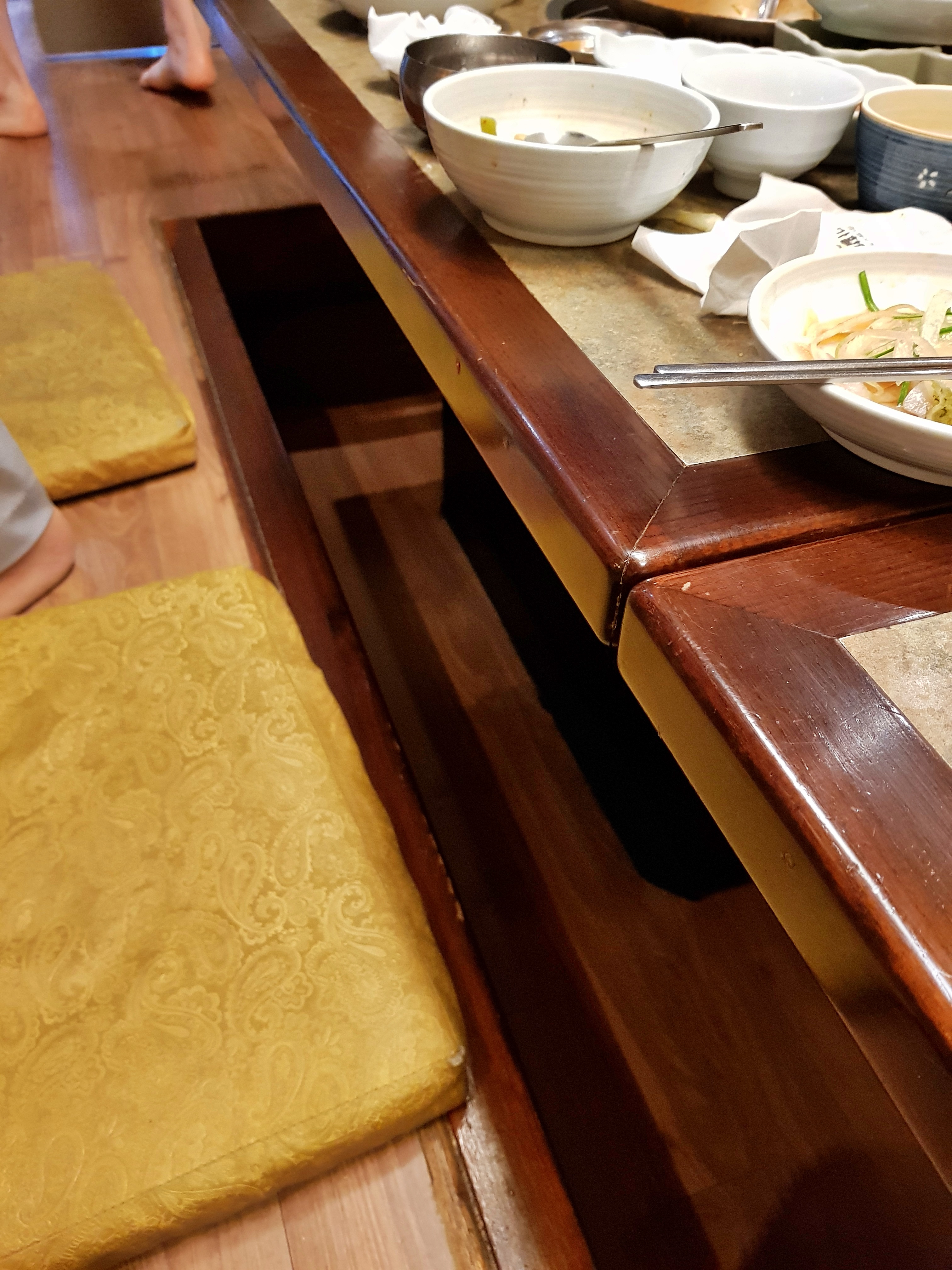 이 식당에서 제일 맘에 드는 부분 중 하나입니다. 다리가 편한 좌식 및 입식 테이블이 있어 어르신 분들이 앉기 편합니다. 저도 편하고요.