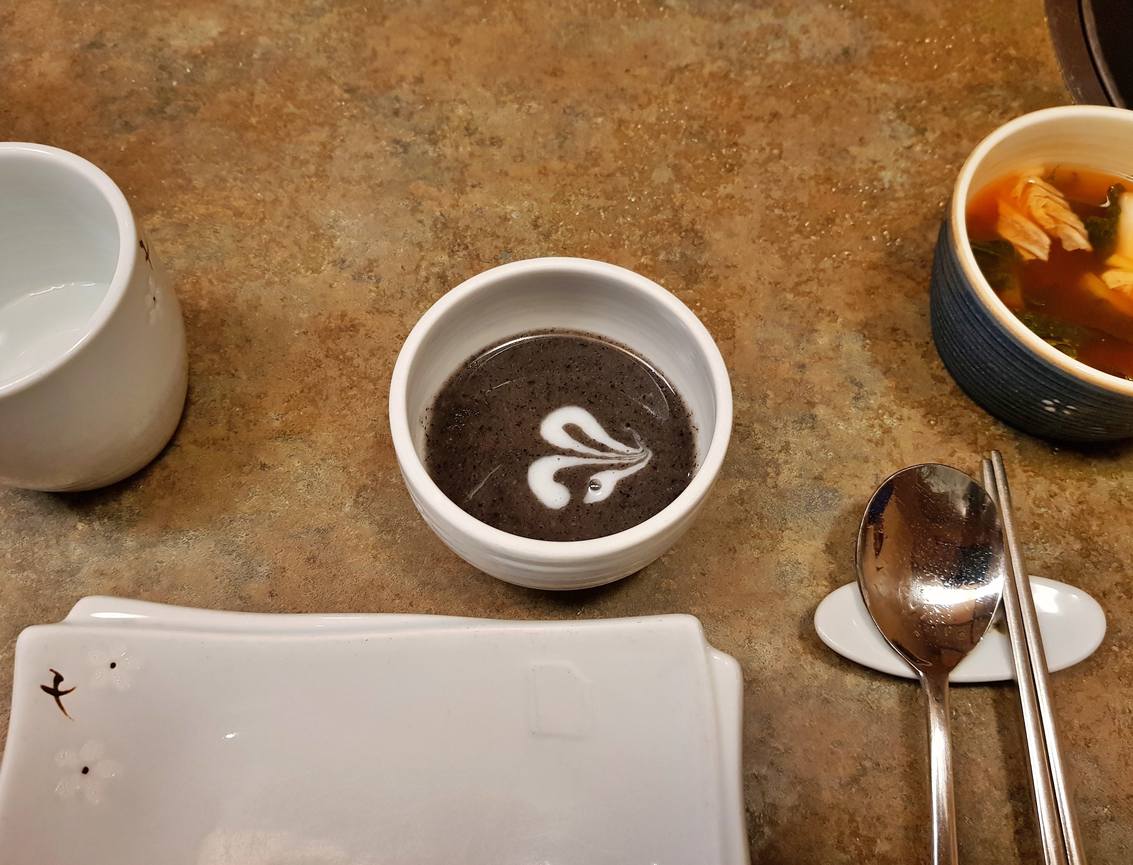 흑임자죽과 닭가슴살 요리(이름은 모르겠네요)입니다. 흑임자 죽은 고소하고 부드러웠습니다.