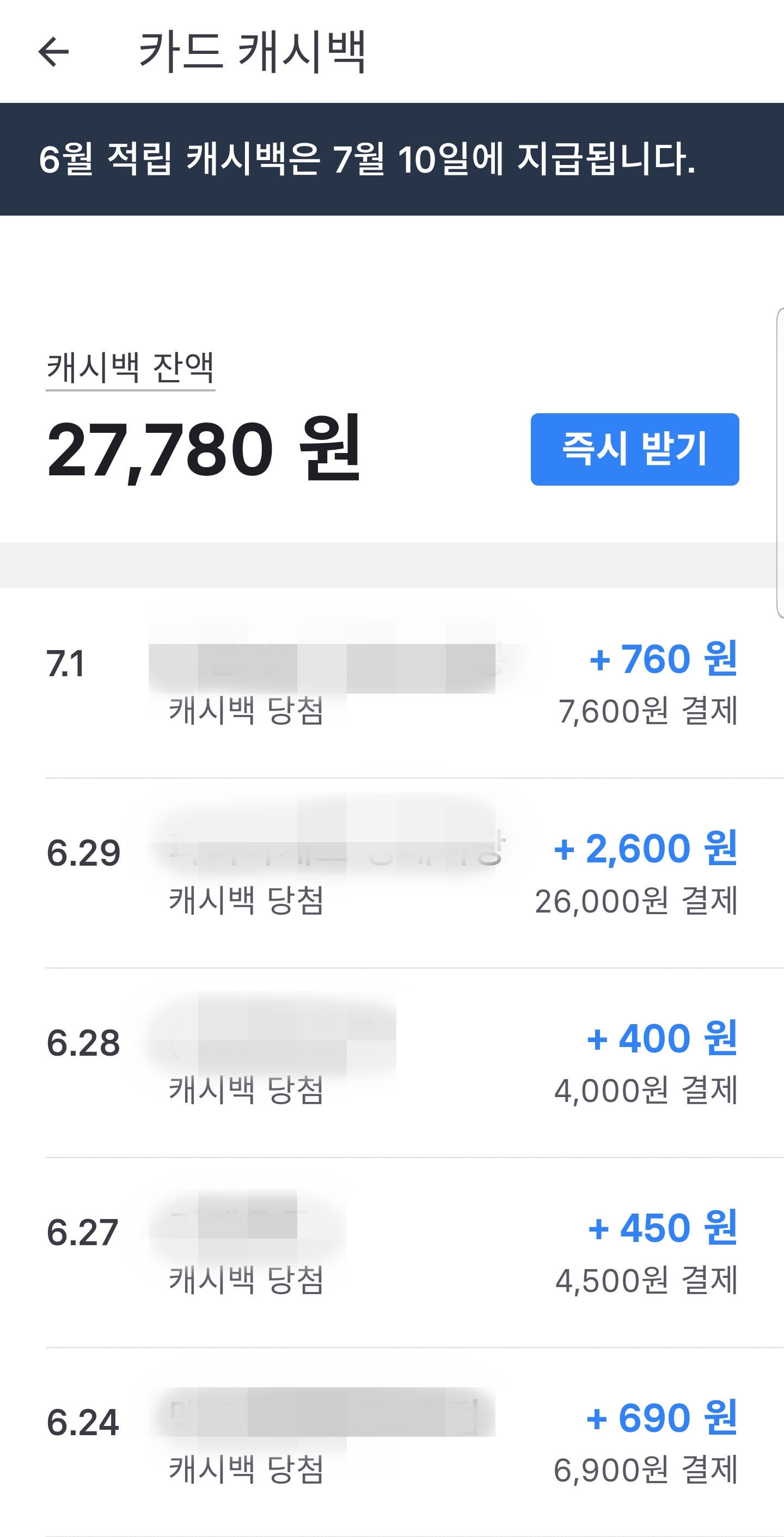 마트에서 결제를 하는데, 계속 승인이 나지 않아 6번 시도 후 다른 카드로 결제했습니다. 그리고 10분 후에 알람이 계속 울리더라고요. 확인해 보니, 아까 결제를 시도했던 6건이 한 번에 결제됐습니다;;; 다행히 전부 결제 취소해주셔서 큰 문제는 없었습니다.