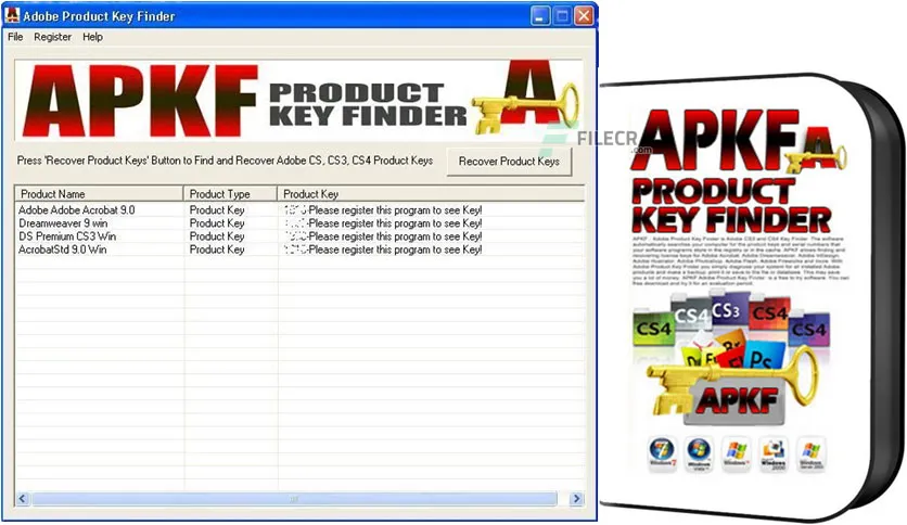 Windows PC용 APKF Adobe Product Key Finder 2 무료 다운로드. 시스템 또는 손상된 하드 드라이브에서 어도비 라이센스 키를 복구하여 비용을 절약할 수 있습니다.