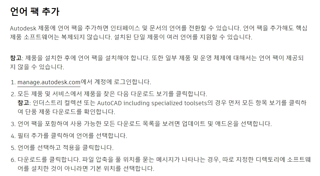 오토캐드 2023 한글 언어 팩 설치 힘든 이유(오토캐드 한글버전 다운로드)