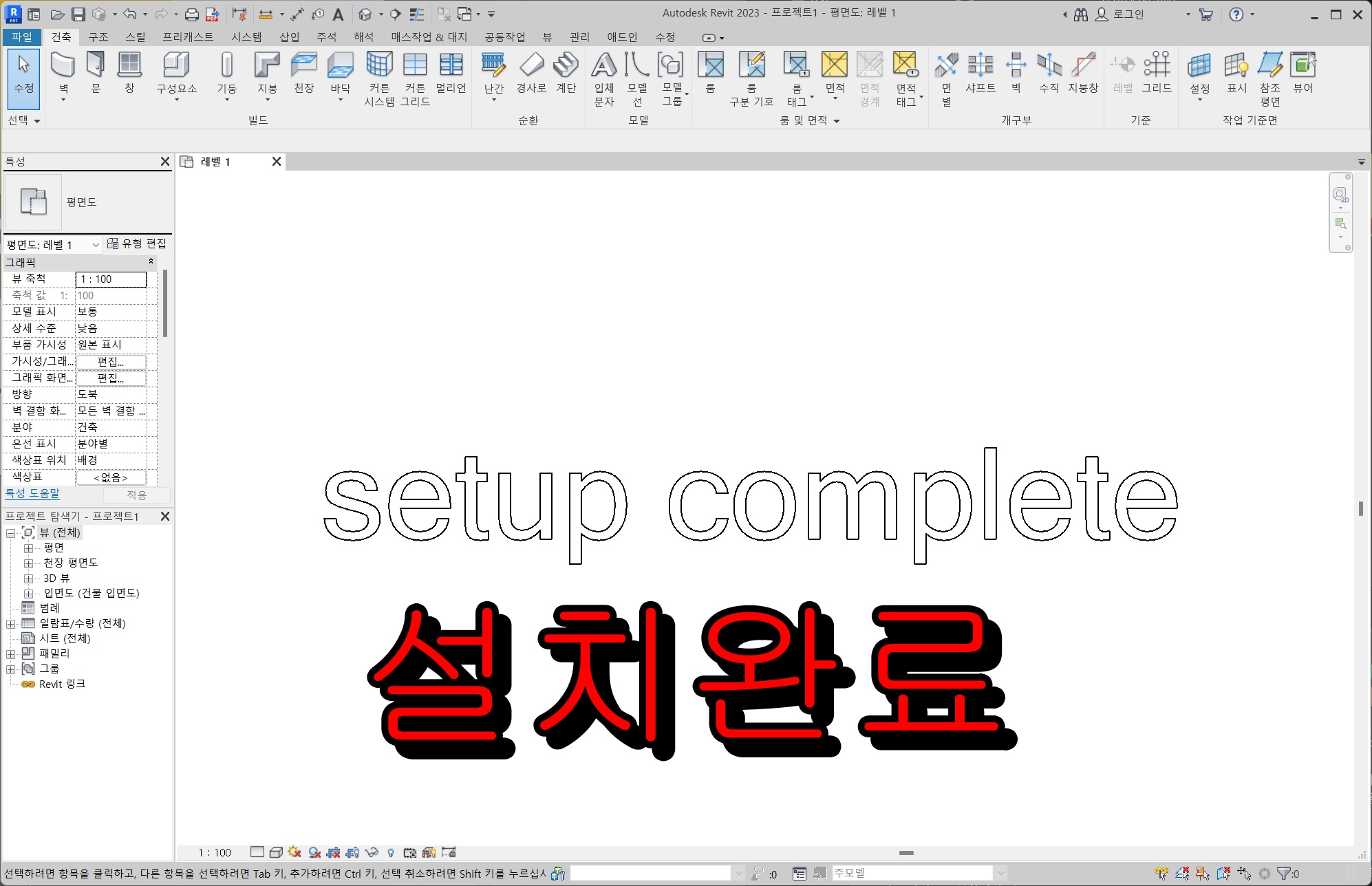 Revit 2023의 설치가 완료되었습니다.