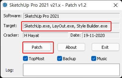 실행화면입니다. 스케치업 프로는 3개 파일 크랙 작업을 해야 합니다. Patch를 클릭합니다.
