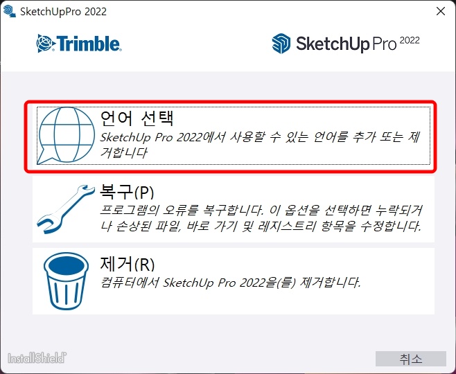 스케치업 프로 2022 설치 프로그램입니다. 설치 언어를 선택합니다.