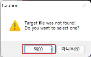 크랙 타겟 파일을 못찾는다고 나옵니다. 예 를 누릅니다.