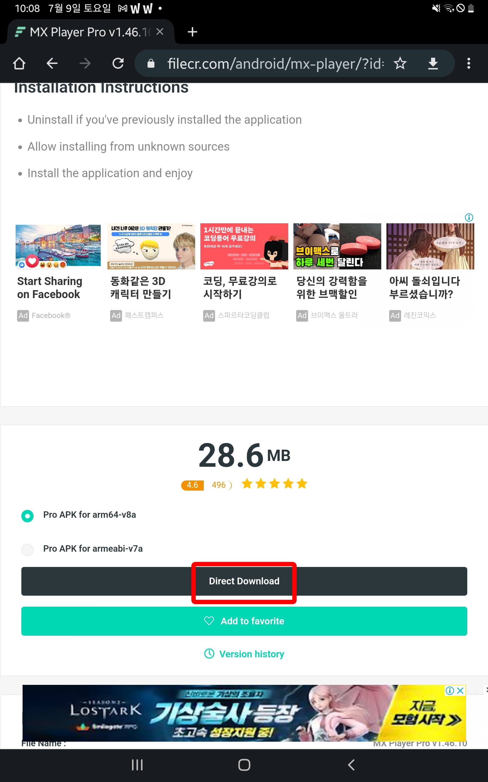 MX Player Pro(광고 없는 버전) 1.46.10 다운로드 설치 방법