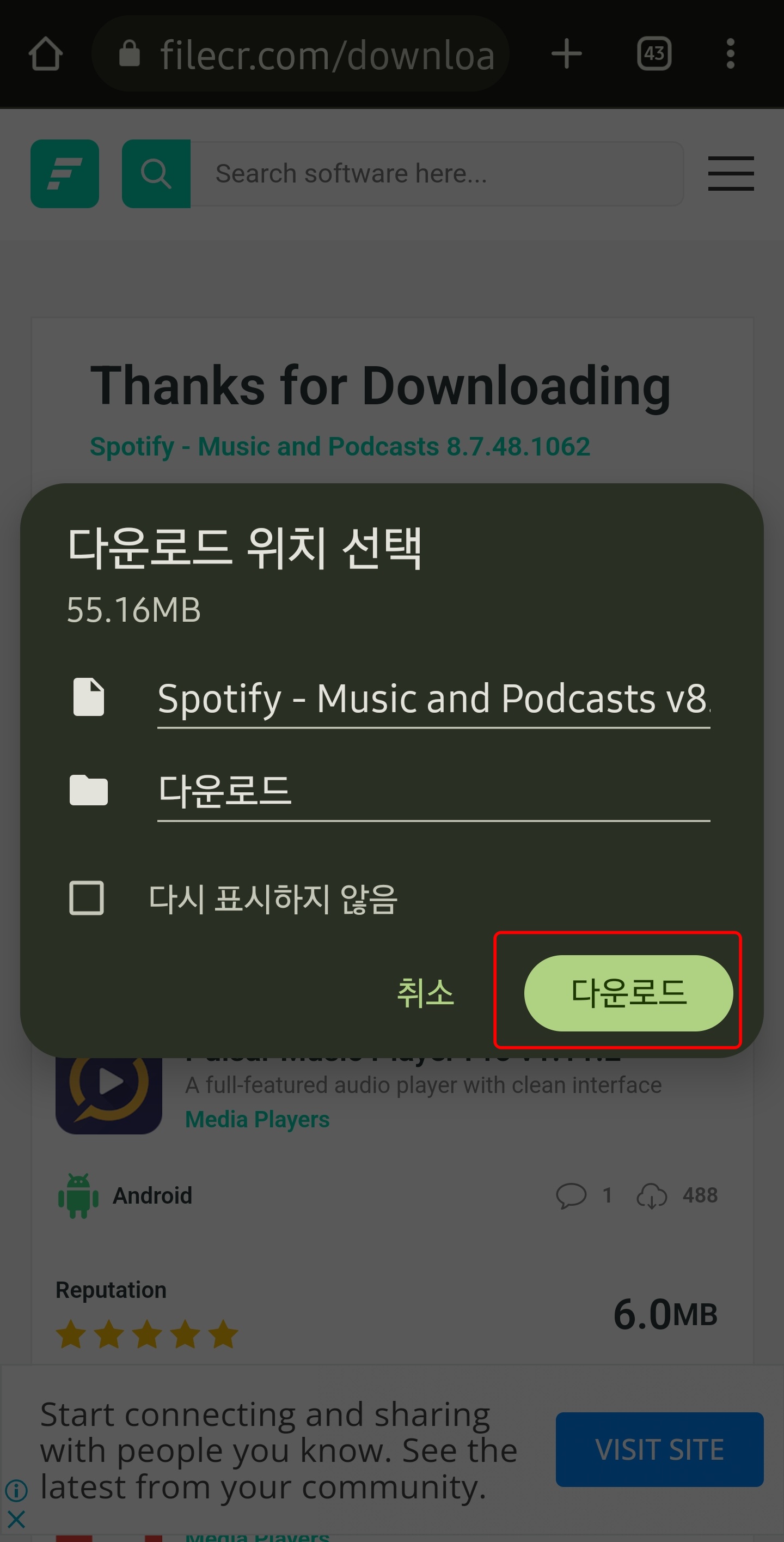 스포티파이다운로드는 FileCR을 통해 다운받을 수 있습니다. 아래 링크를 클릭합니다.