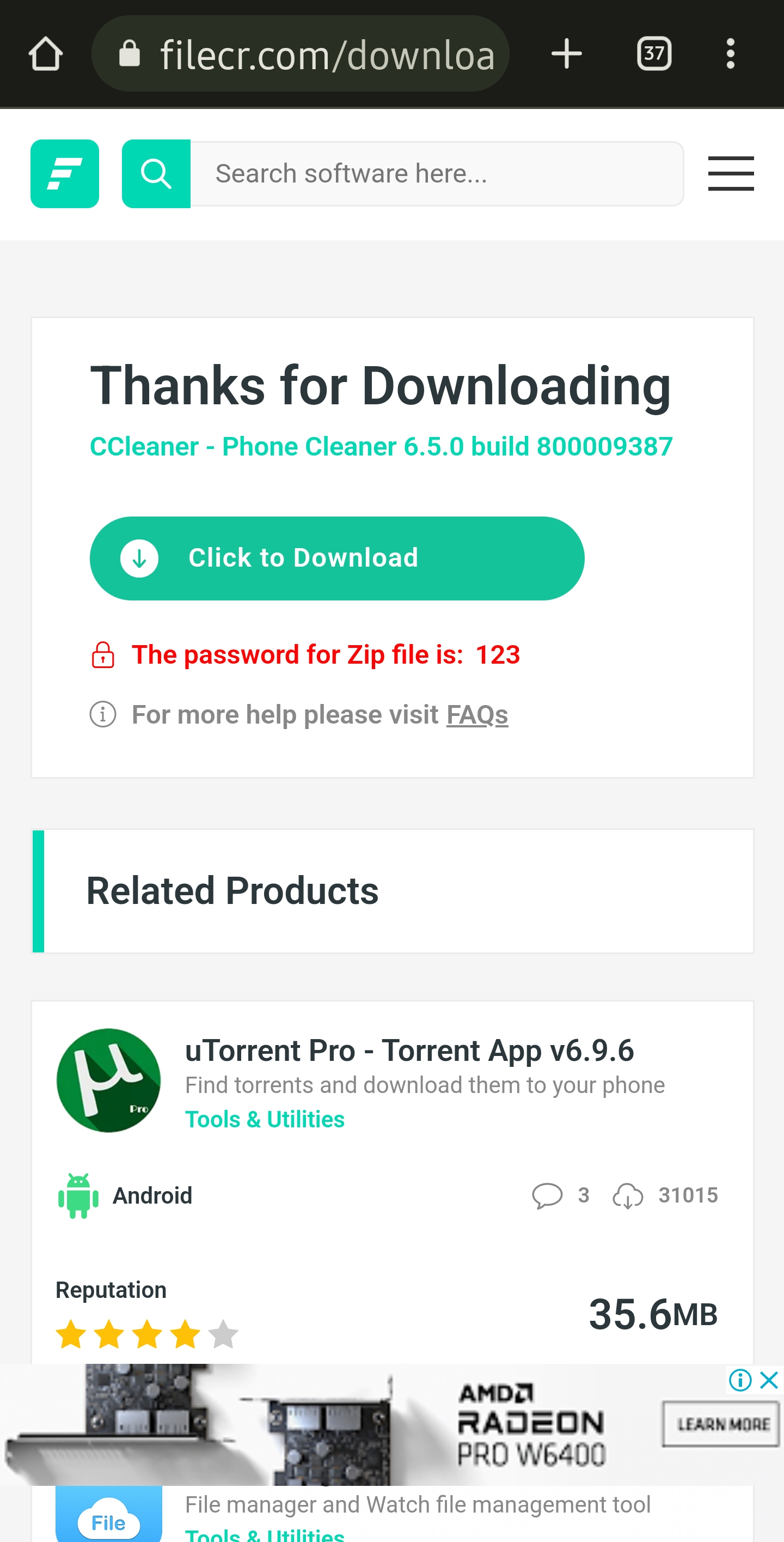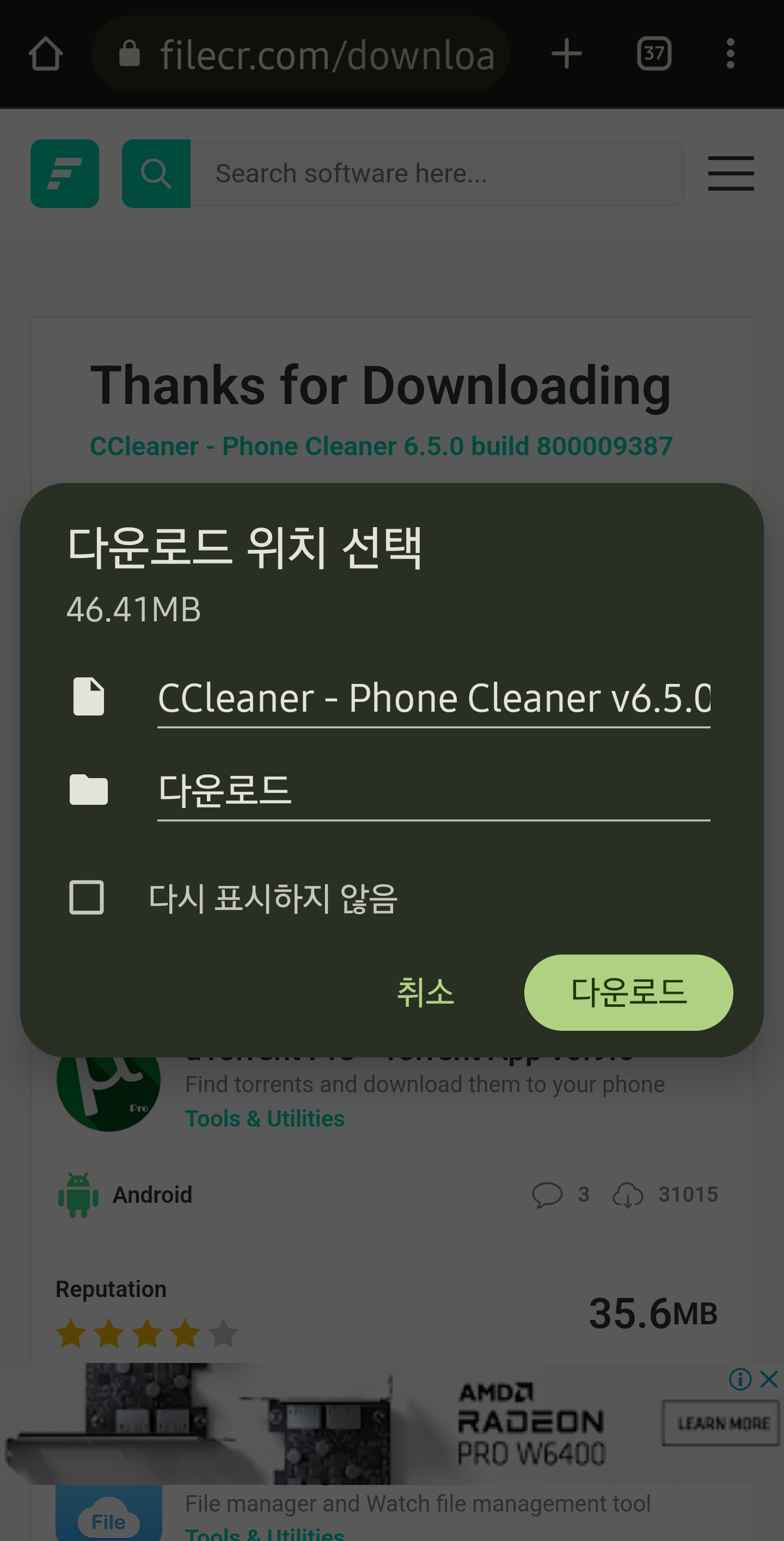 CCleaner 모바일 버전 다운로드는 FileCR을 통해 다운받을 수 있습니다. 아래 링크를 클릭합니다.