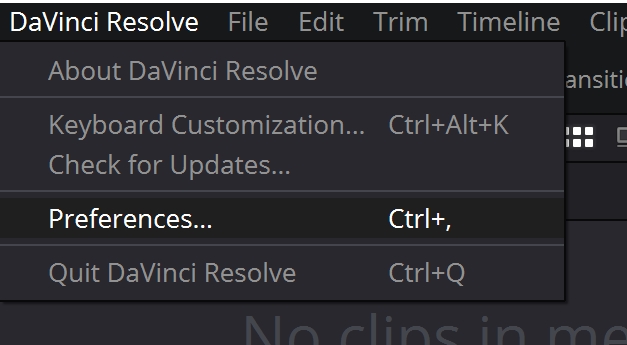 DaVinci Resolve-> Preference로 이동합니다.