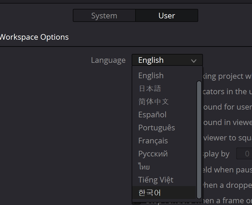 다빈치 스튜디오 리졸브 18 한글 설정 방법