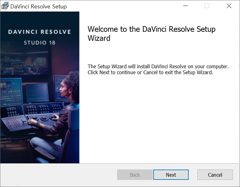 이후 다빈치 리졸브 스튜디오 18 설치 프로그램이 뜨고, Next를 몇번 누르면 설치가 시작됩니다. 설치 시간은 오래 걸리지 않습니다.
