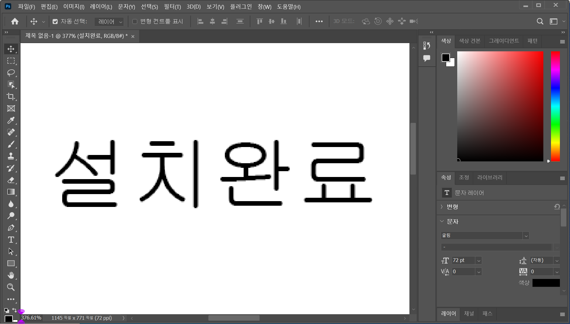 클릭 몇번이면 포토샵 2023 설치를 시작합니다. 설치 시간은 5분 정도 걸립니다. 설치가 끝나면 Finish를 눌러 포토샵 2023 설치 프로그램을 종료합니다.