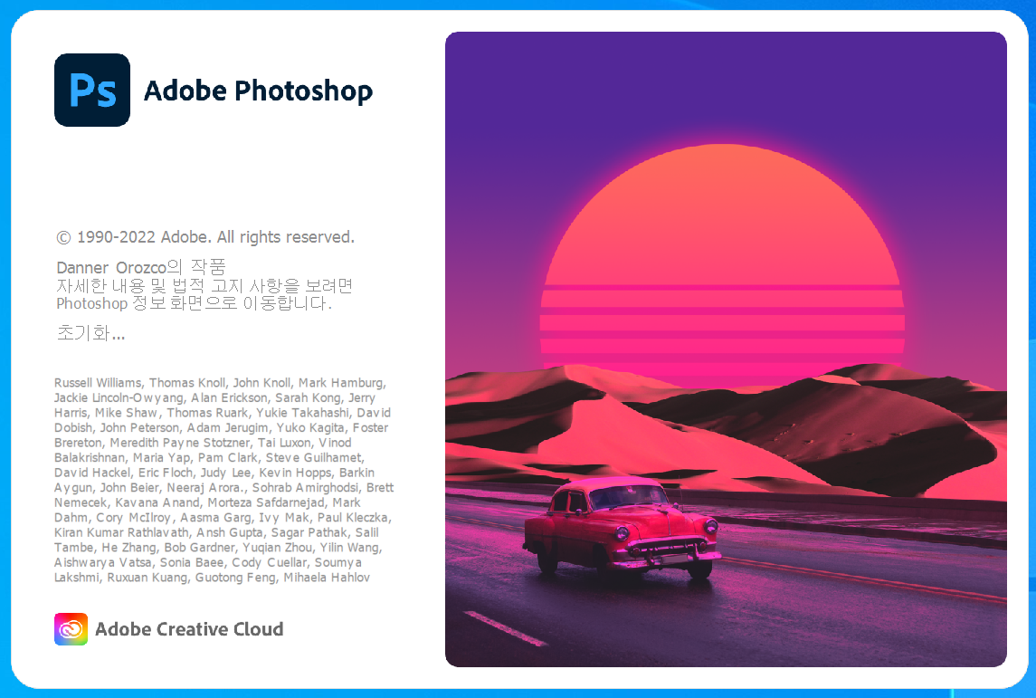 포토샵 2023 로딩 화면입니다. 이미지가 바뀌었군요. 우측 이미지는 새로운 버전이 나올 때마다 바뀝니다.