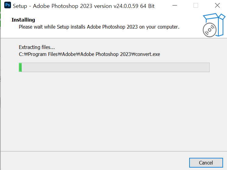 5초정도 기다리면 다운로드 버튼이 활성화 됩니다. 클릭해서 파일 다운로드를 시작합니다. 다운로드가 끝나면 압축을 풀고 포토샵 2023 설치를 시작합니다. 포토샵 2023 버전은 AdobePhotoshop2023v24.0.0.59 입니다.