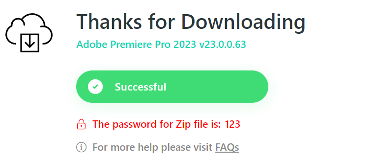 몇 초 지나면 다운로드 버튼이 활성화되면서 다운받을 수 있는 상태가 됩니다. 클릭해서 프리미어 프로 2023 설치 파일을 다운받습니다.