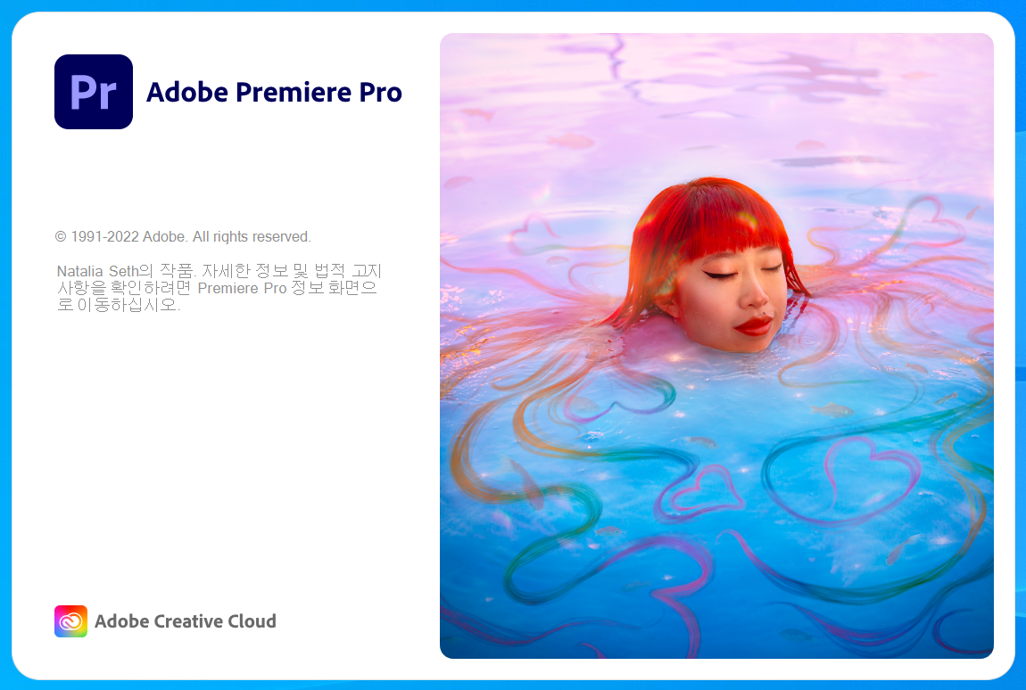 프리미어 프로 2023의 로딩 화면입니다. 이미지가 2022에 비해 밝아졌습니다.