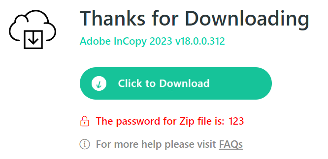 조금 기다리면 다운로드 메뉴가 활성화됩니다. Click to Download를 클릭하면 어도비 인카피 2023 설치 파일을 다운로드 받을 수 있습니다.