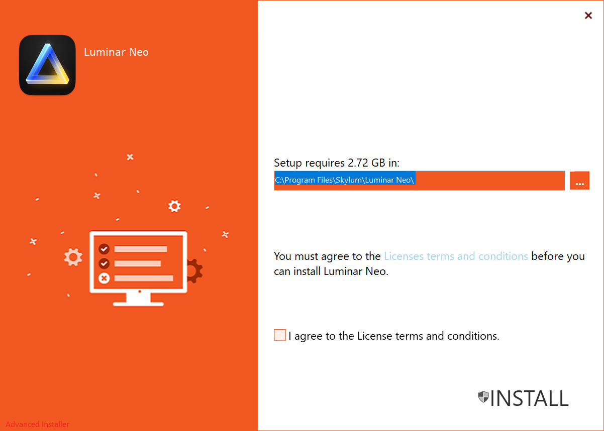루미나르 네오 설치 프로그램입니다. 사용 약관에 동의한 후 INSTALL을 클릭합니다.