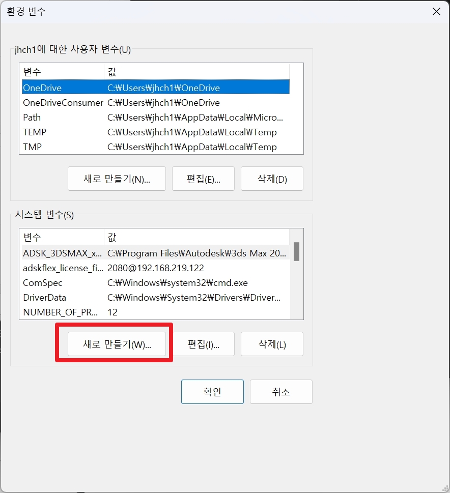 시스템 변수에 있는 새로 만들기 를 클릭합니다.