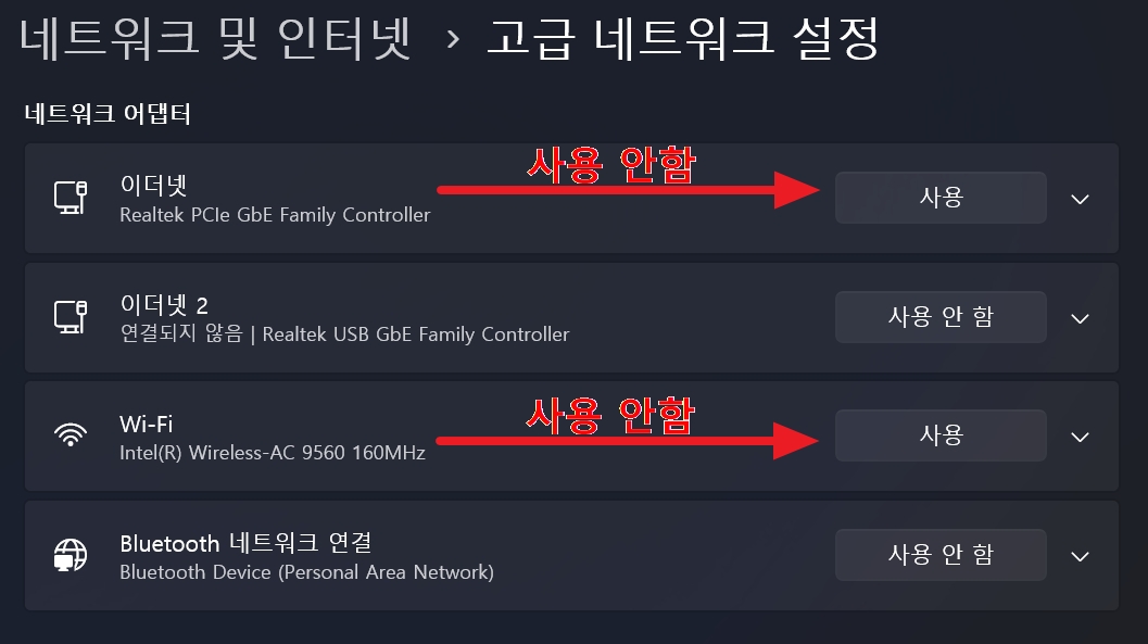 ❗설치를 시작하기 전에 인터넷은 해제하고 진행하는 것이 좋습니다. 인터넷 연결을 간단하게 해제하는 방법은 아래 링크를 참고하세요.