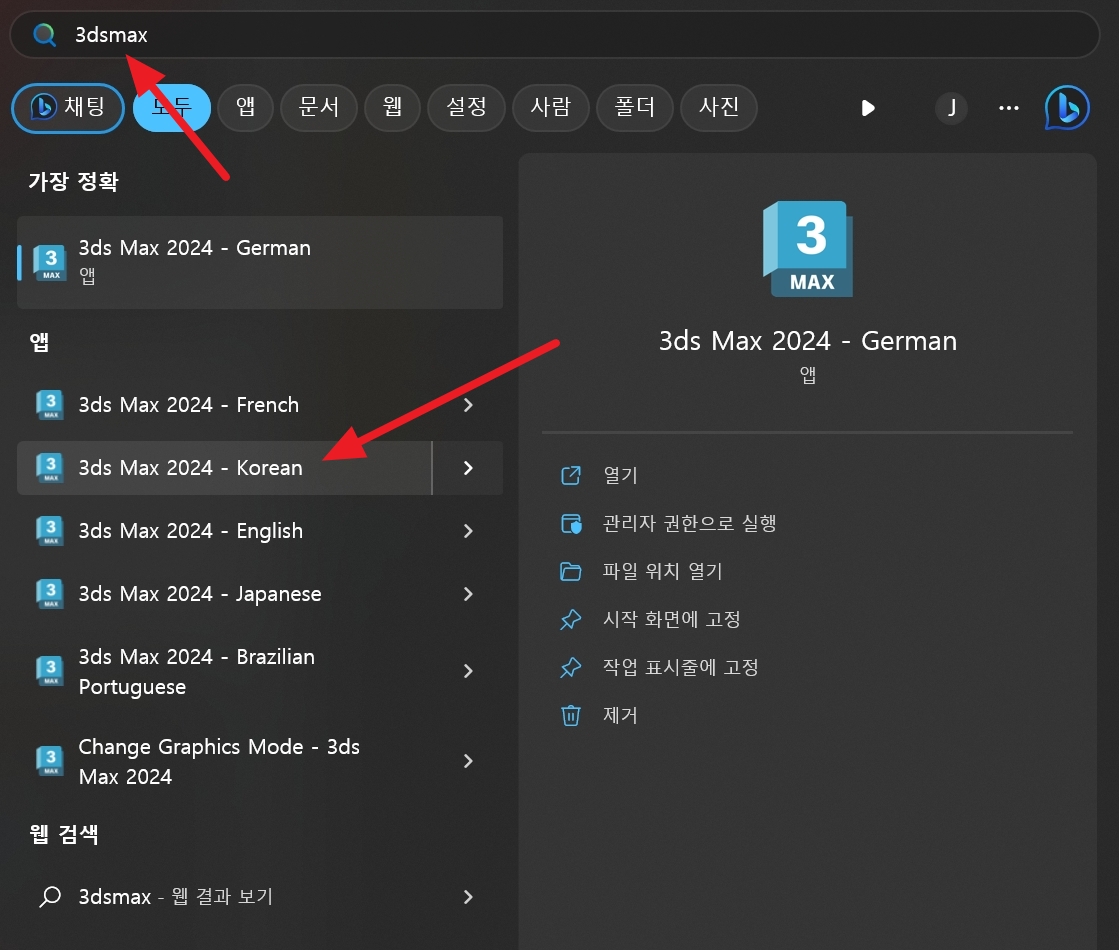이제 3DS MAX 프로그램을 실행합니다. 못찾겠으면 검색에서 3dsmax를 치면 나옵니다.