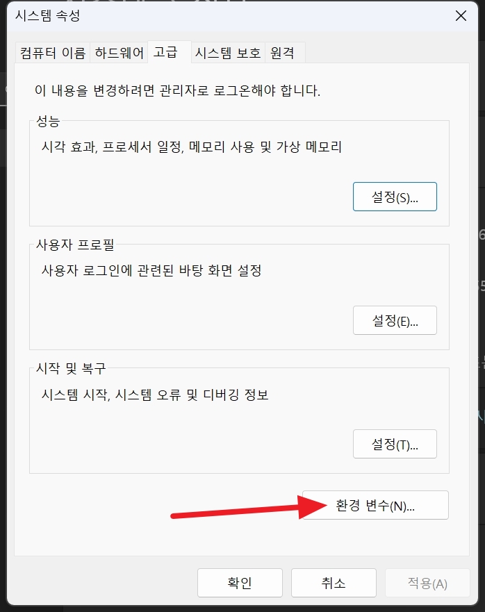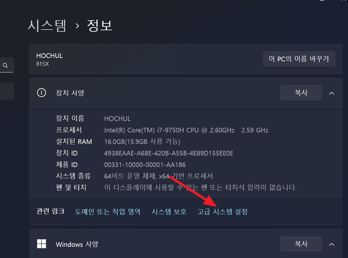 고급 시스템 설정 으로 이동합니다.