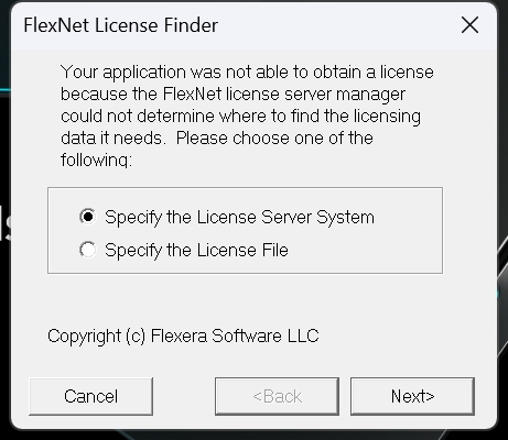 FlexNet License Finder가 나왔을 경우