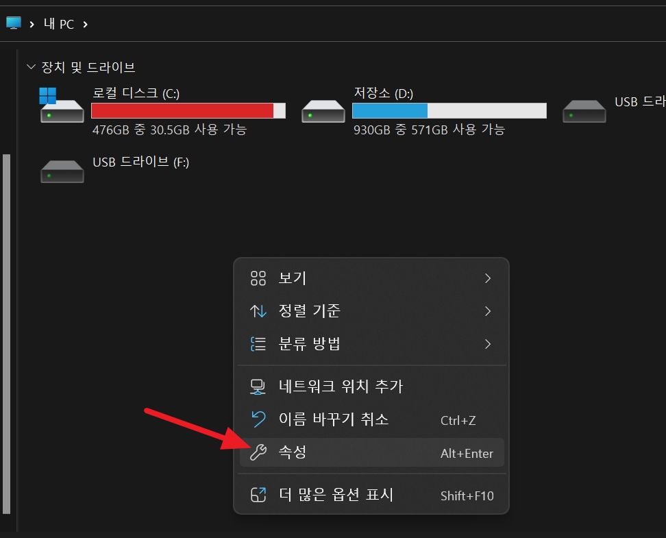 내 컴퓨터 에서 속성 으로 이동합니다.