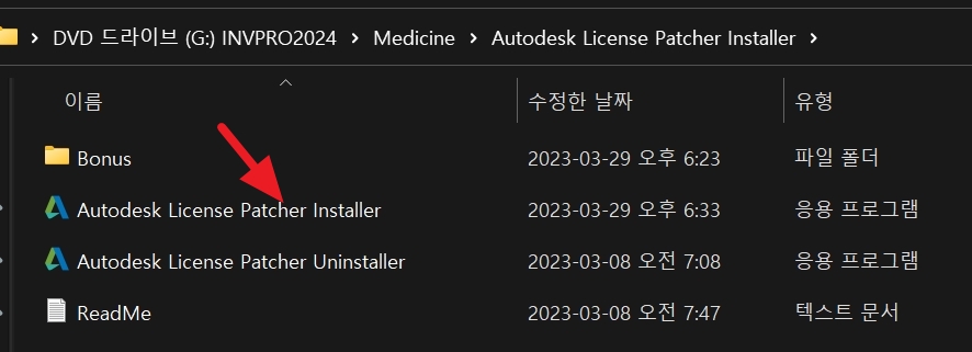 이제 라이센스 패치를 설치할 차례입니다. Medicine 폴더 내에 있는 Autodesk License Patcher Installer 폴더 내에 Autodesk License Patcher Installer 프로그램을 실행합니다. 실행하면 알아서 인증을 진행하므로, 추가 작업은 필요 없습니다.