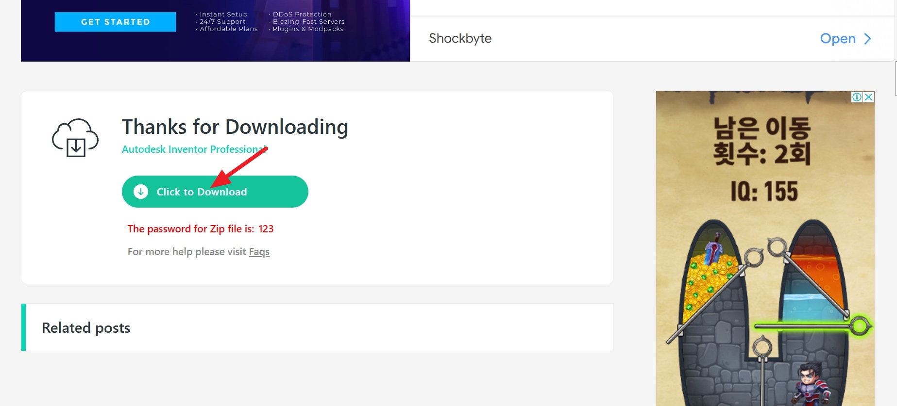 5초 정도 기다리면 다운받을 수 있는 버튼이 활성화됩니다. Click to Download를 눌러서 인벤터 2024 설치 파일을 다운받습니다.
