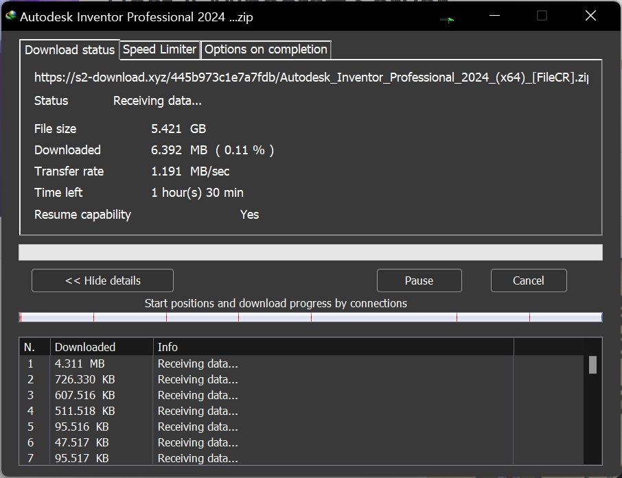 IDM을 이용하면 조금 더 빠르게 다운받을 수 있습니다. 해외 서버라 일반 다운로드로 받으면 오래 걸려요.