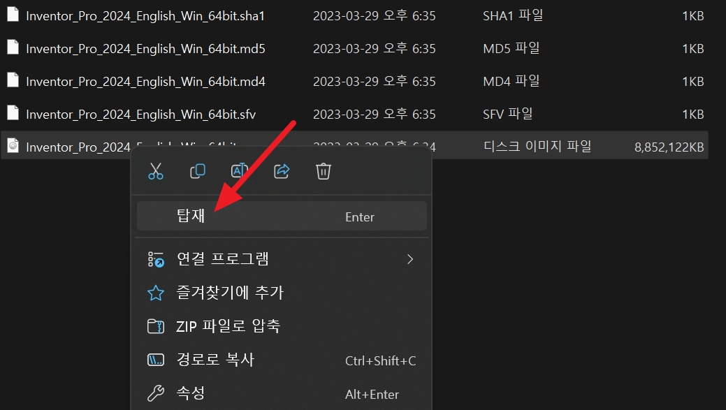 다운받은 인벤터 2024 설치 파일의 압축을 풉니다. 비밀번호는 123 입니다.
