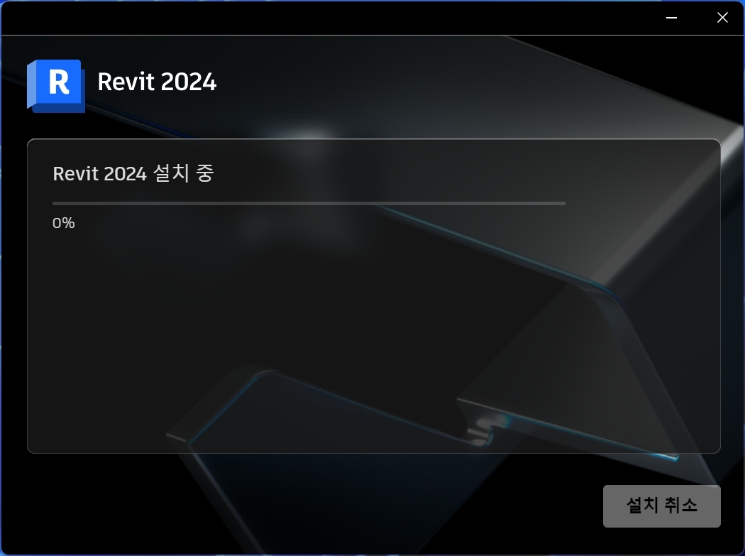 Revit 2024를 설치중입니다. 설치 시간은 10분 내외 입니다. 설치가 끝날 때까지 기다립니다.