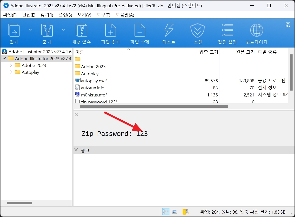 다운받은 압축 파일을 실행하고 압축을 풀어줍니다. 비밀번호는 123 입니다.