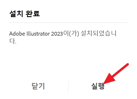 설치가 완료되면 실행 을 클릭해서 일러스트 2023이 제대로 실행되는지 확인합니다.