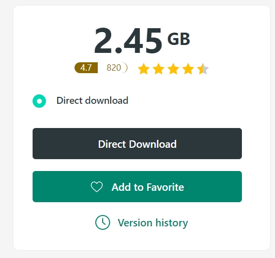 접속하면 우측 하단에 다운받을 수 있는 링크가 있습니다. Direct Download를 클릭합니다.