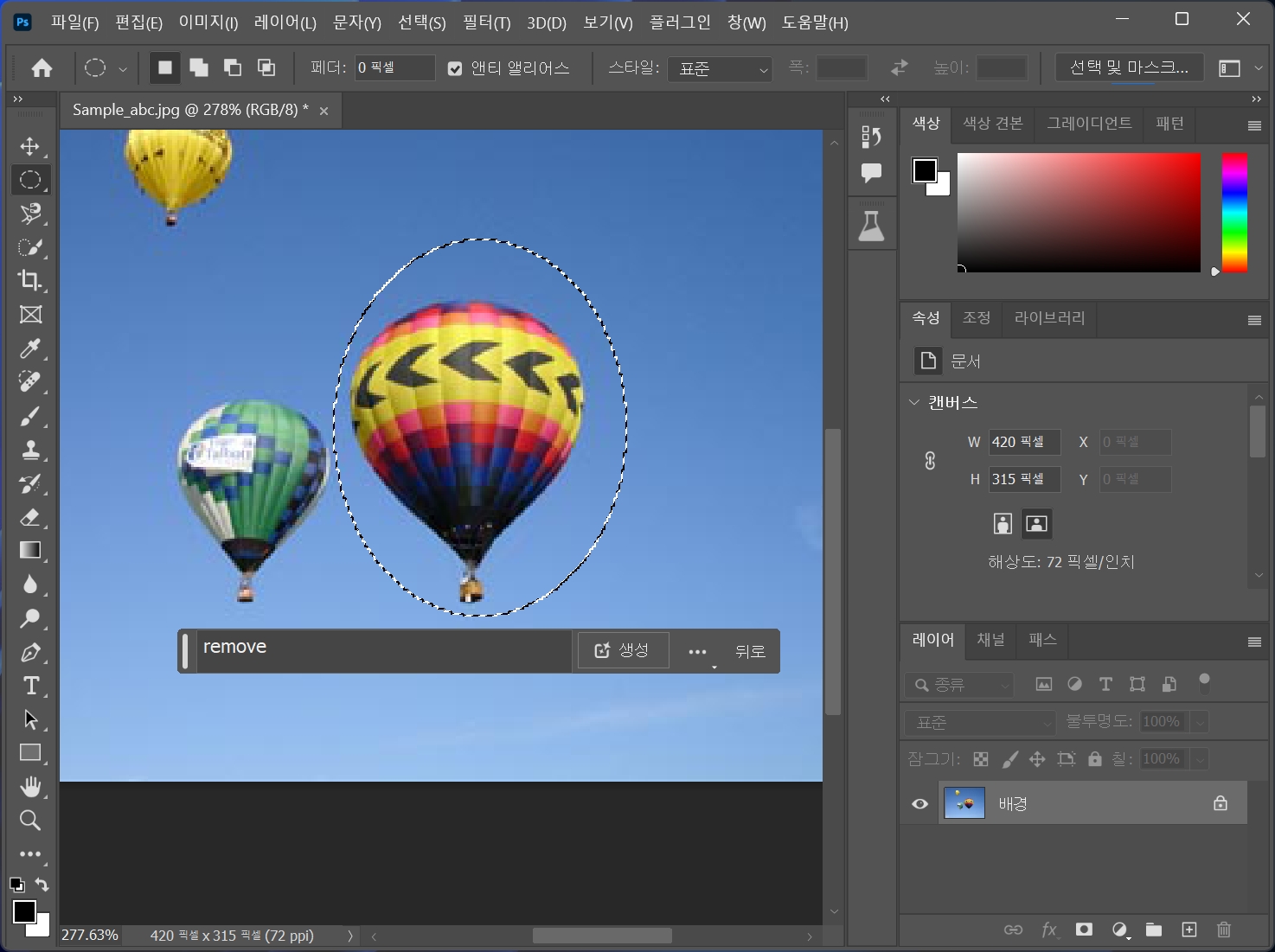열기구를 포함한 주변 이미지까지 선택하고 다시 remove를 선택합니다.