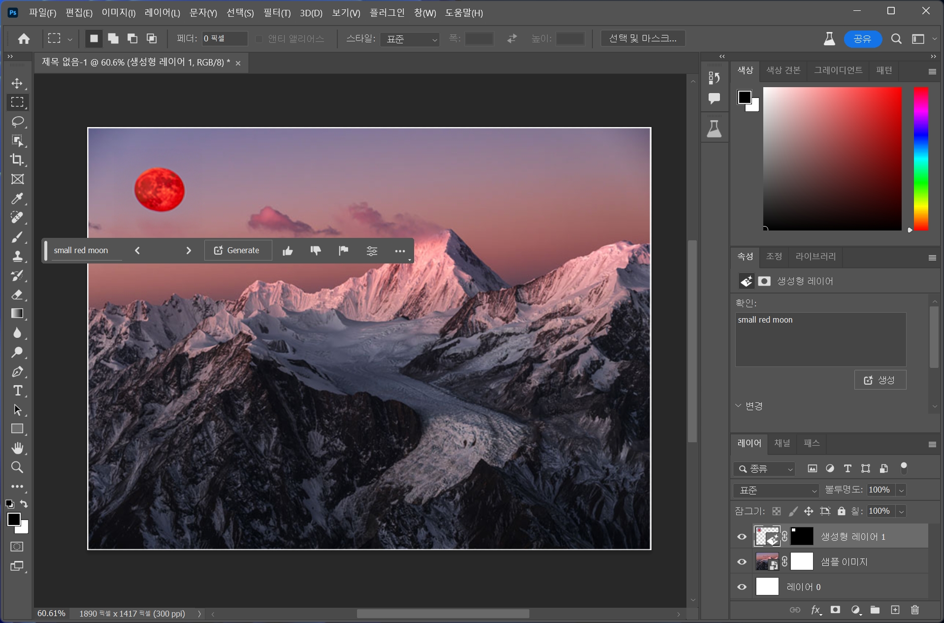 지정한 범위에 붉은 달이 생성되었습니다. 생성된 이미지는 4가지입니다. 원하는 이미지를 골라서 쓰면 됩니다.