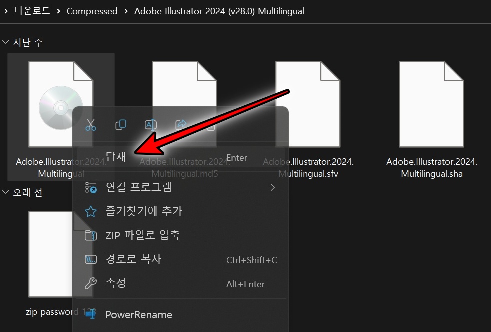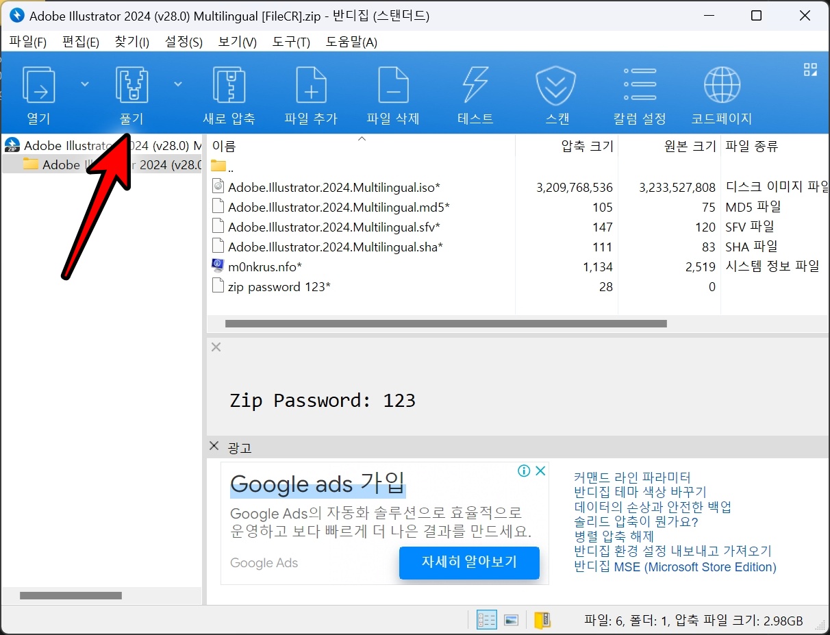 다운받은 압축 프로그램의 압축을 해제합니다. 비밀번호는 123 입니다.