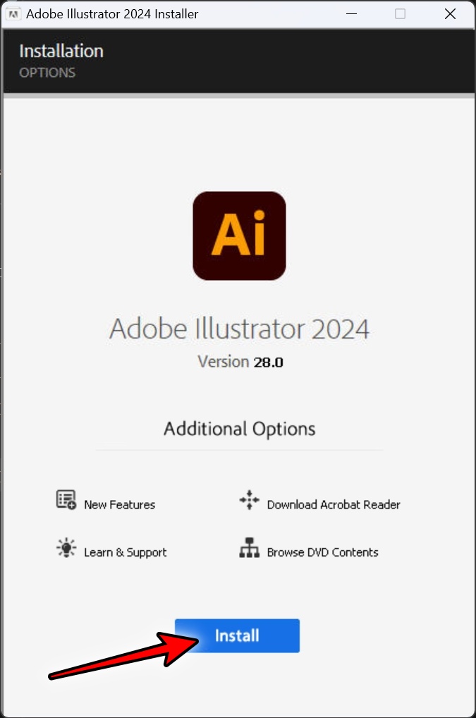 일러스트 2024 설치 프로그램입니다. Install을 클릭합니다.